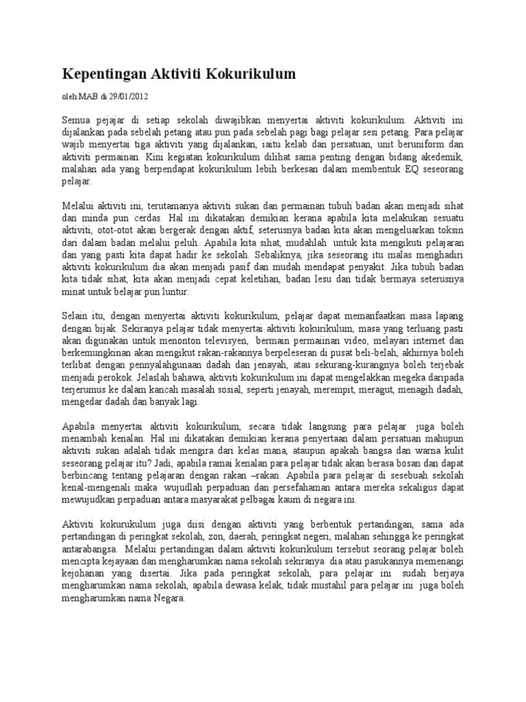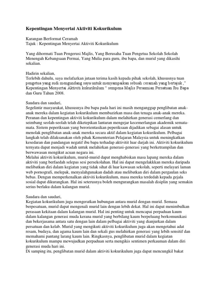 Karangan Syarahan Faedah Menyertai Aktiviti Kokurikulum / Doc Aktiviti Kokurikulum Konsep Matlamat Strategi Dan Perlaksanaan Imelda Manu Matthew Academia Edu